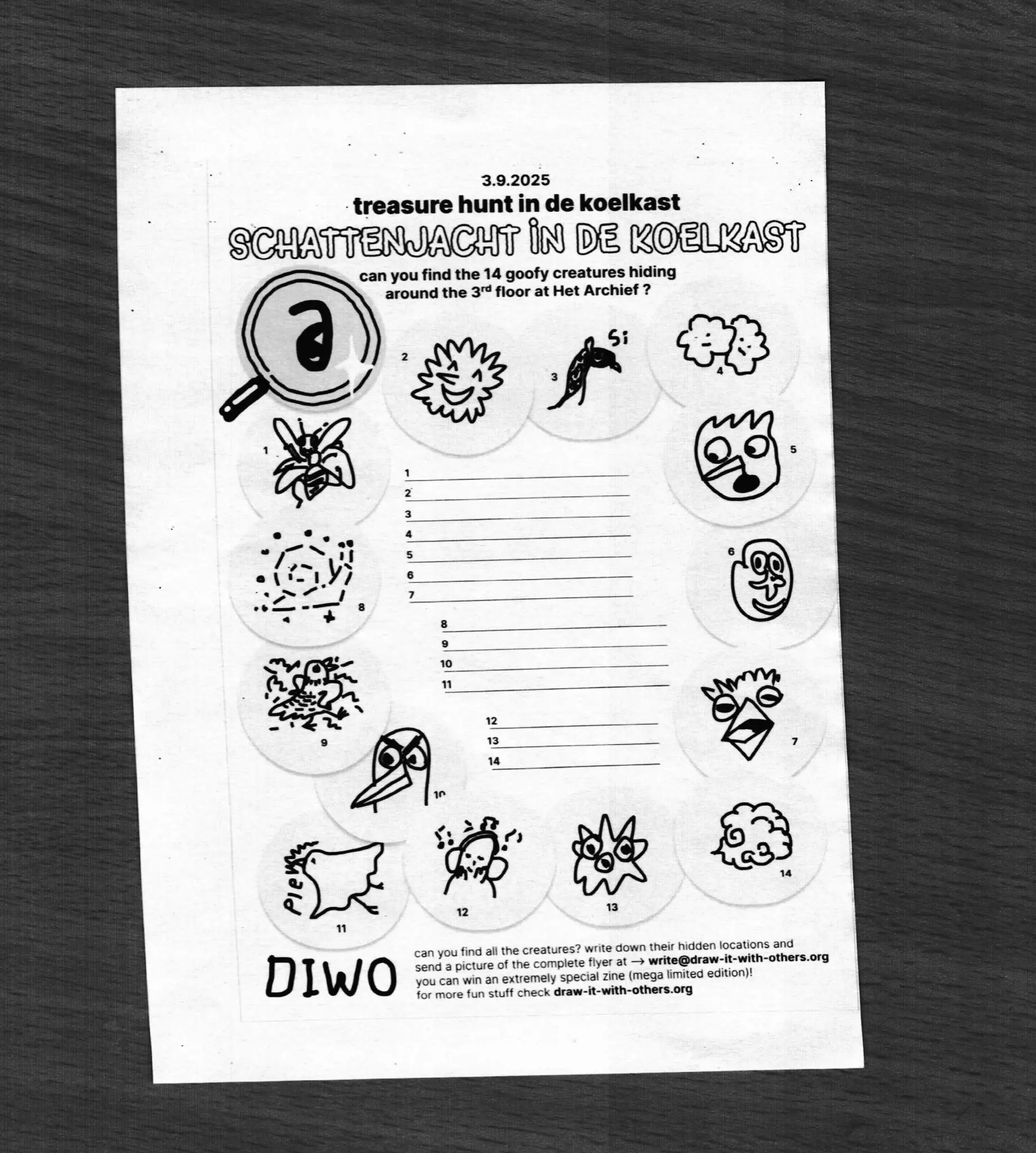 The first participants to find them all were promised a special limited edition DIWO zine as a price. We still need to send out the prizes sorry. Or maybe you can come and collect them you know?